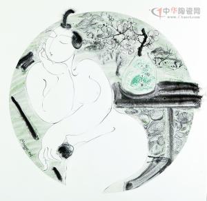 劉正作品中重疊相連的人體造型體現(xiàn)了瓷板畫具有展現(xiàn)雕塑這一藝術(shù)形態(tài)的可能性。“我一直覺得我掙扎在一張網(wǎng)中,這張網(wǎng)是由復(fù)雜的歷史文化構(gòu)成的。一方面,我需要依賴這張網(wǎng),使自己不至于懸浮在空中。另一方面,我需要掙脫這張網(wǎng),使自己減少被束縛的痛苦和被窒息的危險(xiǎn)。”這就是他的當(dāng)代藝術(shù)創(chuàng)作理念。他的釉下彩瓷系列作品,立意新穎,邏輯思維縝密,通過具有生命力的線條,張揚(yáng)了瓷板畫的哲學(xué)空間。