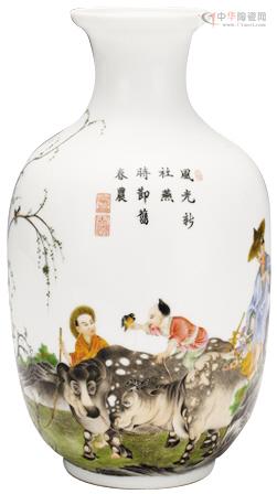 民國仿乾隆款琺瑯彩牧牛圖瓶