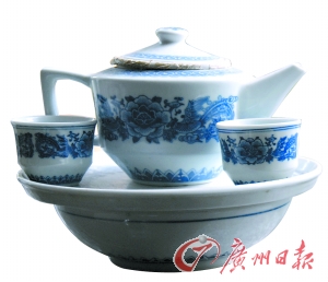 上世紀80年代的華風瓷廠廠貨,8頭帶茶盤青花茶具(部分)。