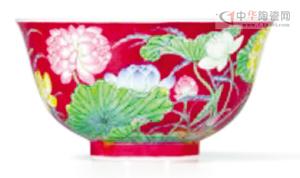 香港蘇富比2013年春拍中以7400萬港元成交的清康熙御制胭脂紅地琺瑯彩蓮花盌