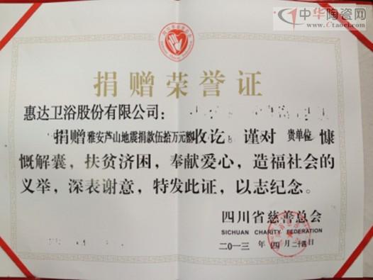 2008年汶川大地震,唐山惠達(dá)衛(wèi)浴第一時間捐款100萬;2009年惠達(dá)衛(wèi)浴總經(jīng)理王彥慶親自前往四川災(zāi)區(qū)考察災(zāi)后重建工程;2010年4月14日,青海玉樹發(fā)生7.1級地震,4月15日,惠達(dá)衛(wèi)浴向中國紅十字基金會捐款50萬元支援玉樹;4月15日,惠達(dá)衛(wèi)浴在北京舉行義賣,將義賣產(chǎn)品所得款項全部捐贈我國西南旱區(qū);4月29日,惠達(dá)衛(wèi)浴捐贈僑聯(lián)援建北川中學(xué)捐贈儀式在綿陽舉行,惠達(dá)衛(wèi)浴捐贈價值100萬元的潔具產(chǎn)品幫助北川中學(xué)重建……一筆筆捐贈,一次次善舉,惠達(dá)衛(wèi)浴正以他們的行動來回報整個社會。同樣經(jīng)歷過災(zāi)難,同樣接受過別人的幫助,惠達(dá)衛(wèi)浴清楚的了解每一次公益行動背后的真正意義。對于惠達(dá)衛(wèi)浴來說,公益事業(yè)是一條永遠(yuǎn)沒有終點(diǎn)的道路,而他們也將用自己的努力在這條道路上闊步前行!