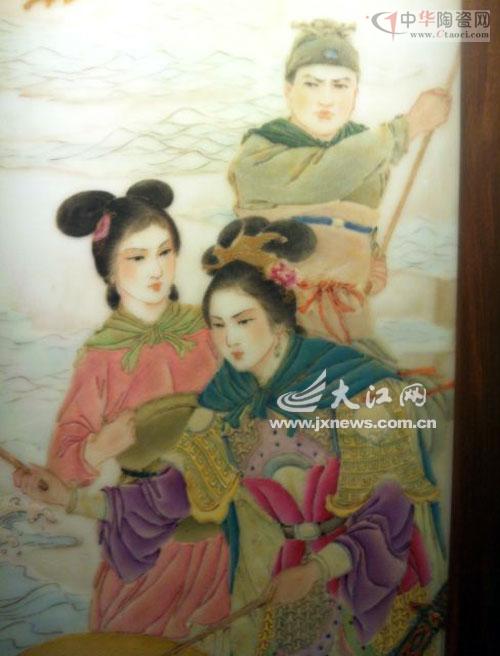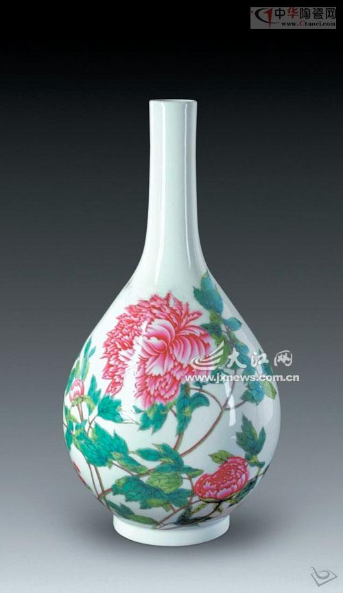 “沒骨彩”不同于粉彩,它完全不用珠明料畫線條,而是用淡墨或淡紅勾出大致的輪廓,然后滿涂一層玻白;另外從顏色直接彩飾所要表現(xiàn)的花朵層次和衣紋的轉(zhuǎn)折,一件作品的完成費時較久。“沒骨彩”技法較難掌握,主要是沒有固定線條依據(jù),填色渲染光線輻射度極強,必須隨時掌握畫意,因此不是一般填彩人員能勝任的。上世紀五十年代至七十年代,陶瓷美術家葉震嘉,以及傳人張金定、宗其榜等專家才能全面掌控。“沒骨彩”成為“567”新中國陶瓷藝苑中的一朵奇葩。