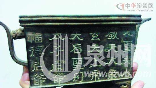 錫質(zhì)香爐不大,上面刻有“玄天上帝”“媽祖”等字,而這些神明在泉州多地均有奉祀。