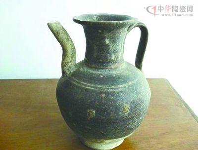 當天,彭爹爹還駕船帶賴曉平到其他幾戶漁民家考察。在一戶漁民家,他們看到了一件非常完整的貫耳長流盤口壺。該壺為青瓷黑釉,十分優(yōu)美,典型的宋代工藝特點。青瓷盤口壺因在湖水中浸泡時間太長,壺嘴上面釉質(zhì)有些剝脫,并沾有出水后干枯的苔蘚。