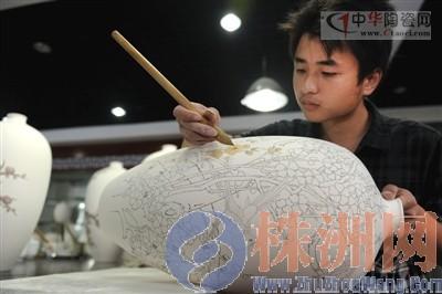3年湖南陶瓷技師學(xué)院的學(xué)習(xí),2年醴陵釉下五彩國(guó)瓷研究所的實(shí)踐,楊志剛已經(jīng)是“老資歷”。不到21歲,還有抹不掉的一臉稚氣,但他的《喜上眉梢》卻活靈活現(xiàn),功力可見(jiàn)一斑。