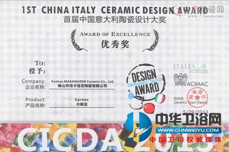 5月29日晚,由意大利對外貿(mào)易委員會及意大利陶瓷機械及設(shè)備制作協(xié)會,聯(lián)合中國陶瓷行業(yè)權(quán)威媒體陶城報,共同舉辦的首屆中國意大利陶瓷設(shè)計大賽頒獎禮,在佛山新媒體產(chǎn)業(yè)園隆重舉行,斂迥岽纱u“卡蒂亞”系列,憑借高超的工藝技術(shù),采用仿自然石頭斷面的紋理效果,濃厚的自然氣息受到評委團的一致好評,授予首屆中國意大利陶瓷設(shè)計大獎優(yōu)秀獎。