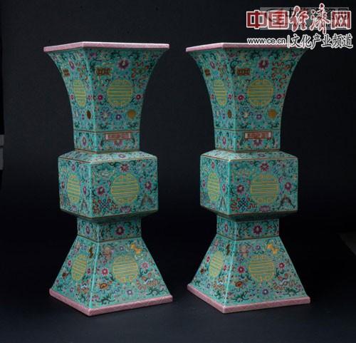 瓷器工藝品專(zhuān)場(chǎng)為此場(chǎng)拍賣(mài)的壓軸專(zhuān)場(chǎng),成交額為1214萬(wàn)元,其中清綠地粉彩花卉堆寶描金團(tuán)壽紋花觚以184萬(wàn)成交。