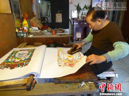 馮炳棠在印制傳統(tǒng)木版年畫 邢健 攝