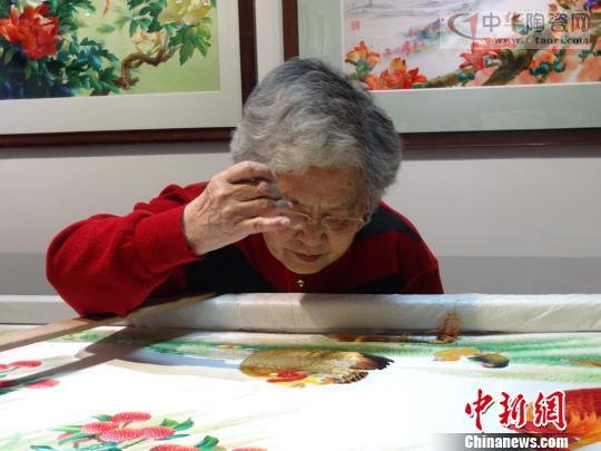 廣繡大師陳少芳在創(chuàng)作 邢健 攝