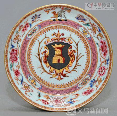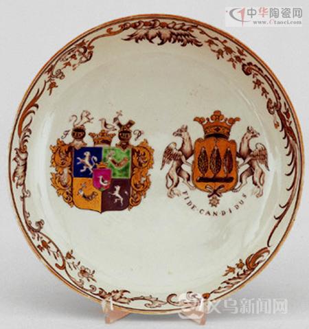 紋章瓷是中國古代外銷瓷的一種,屬于“來樣加工”瓷,即由中國景德鎮(zhèn)工匠按照歐洲商人提供的種類、造型、式樣、紋飾、工期等彩繪燒制而成,它既有中國傳統(tǒng)制瓷工藝特點(diǎn),又體現(xiàn)了精美典雅的歐洲裝飾風(fēng)格,因瓷器上印有歐洲貴族家族的徽章,故又可稱為“徽章瓷”。