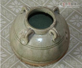 酒缸類:是所有酒具中器型最碩大的一類,主要用于釀造和儲藏酒漿。這類大酒缸規(guī)格大,容量較大,唐代邛窯褐彩花卉紋六耳大罐,腹圍長達143厘米,高達48.5厘米。因此大酒缸多數(shù)設四個系(耳)和六個系(耳)。橋形系或條形系兩兩對稱。系的設置顯然是方便用繩索系牢挑抬搬動,遠途運輸。酒缸以盤口、唇口和子口為多,即使是敞口,口沿也是外斜或外折的,缸口的如此設計顯然是方便封口以免灑漏和走了酒氣。少數(shù)大酒缸甚至還設有雙重蓋子。成都一位收藏家收藏的一件唐代邛窯褐色彩繪四耳大罐,高45厘米,最大腹徑32厘米,胎硬質(zhì)堅,釉色均勻,胎釉結(jié)合緊密,尤為獨特的是這件大罐有內(nèi)外兩重蓋子,顯然這也是為了防止灑漏和走酒氣。