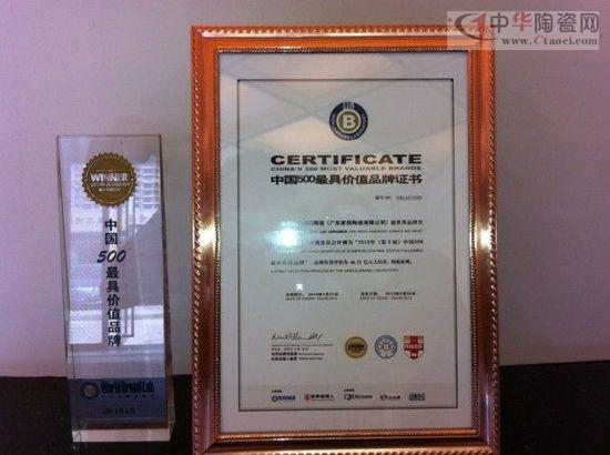 (L&D陶瓷“中國(guó)500最具價(jià)值品牌”獎(jiǎng)杯及證書)