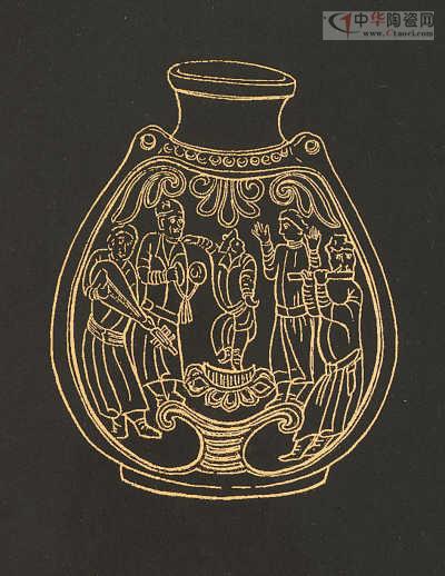 黃釉扁壺繪圖。