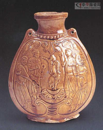 黃釉扁壺,北齊,鉛釉陶器,通高20.5厘米、寬16.5厘米,河南博物院藏。