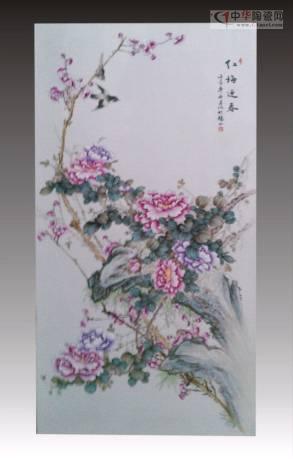 作品2尺6瓷板《花開富貴》被景德鎮(zhèn)陶瓷館永久館藏;