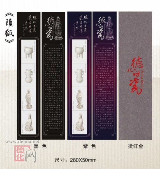 德化白瓷具有質(zhì)地潔白、細(xì)膩如玉、釉面光滑、擊聲如磬的特點,故有"中國白"之稱。其特制的薄胎產(chǎn)品,薄如蟬翼,精美絕倫。德化民間雕塑藝人將雕塑與瓷藝結(jié)合,擅長制作白瓷觀音,所做白瓷觀音儀態(tài)生動,是舉世公認(rèn)的白瓷珍品。德化白瓷不求色彩之華麗,而是追求單純、素潔、典雅之美,對所利用的材料有充分的認(rèn)識,設(shè)計定位與取向是準(zhǔn)確的,充分顯示著歷代匠師們的創(chuàng)造智慧。如果說景德鎮(zhèn)窯的白瓷是以青白釉稱著于世,德化白瓷則是以乳白色為主,釉層腴潤,光色如玉,顯示著冰清玉潔的特質(zhì),蘊涵著耐人尋味的魅力,相比之下具有異曲同工之妙。
