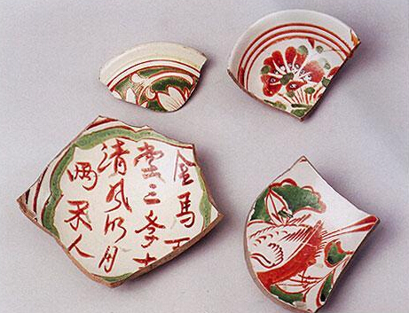 從目前發(fā)現(xiàn)看,紅綠彩瓷的出土地區(qū)和原產(chǎn)地區(qū)在裝飾上存在差異。出土地區(qū)指產(chǎn)品流通使用地,系生產(chǎn)窯口以外的地區(qū)。這類(lèi)遺物在原產(chǎn)地(窯址)中不可能見(jiàn)到,比如紅綠彩貼金器,它是成品器流通到市場(chǎng)后,使用者依其所需再進(jìn)行加工而成的器物,在窯址中不可能找到。這有些類(lèi)似后世的琺瑯彩瓷以及外銷(xiāo)中東、歐洲的大量青瓷、青花瓷,它們都經(jīng)使用者依自己需要而進(jìn)行包嵌金銀的再加工。原產(chǎn)地區(qū)指燒造窯口。金元紅綠彩瓷的燒造窯口現(xiàn)已確認(rèn)的有前面所列幾處,基本上為金后期至元中期燒造地,元代中晚期乃至明初北方燒造紅綠彩瓷的窯口目前還不能確定,有可能為前面確認(rèn)的燒造地點(diǎn),也可能另有所在。經(jīng)調(diào)查發(fā)現(xiàn),紅綠彩瓷器的窯址在山西、河南、河北等地還有很多,約在30處以上。