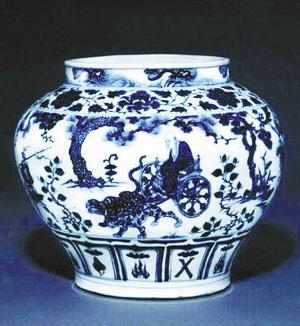 二、元青花鬼谷下山大罐(2.3億元),2005年倫敦佳士得拍賣(mài)成交的天價(jià)藝術(shù)品。如下圖: