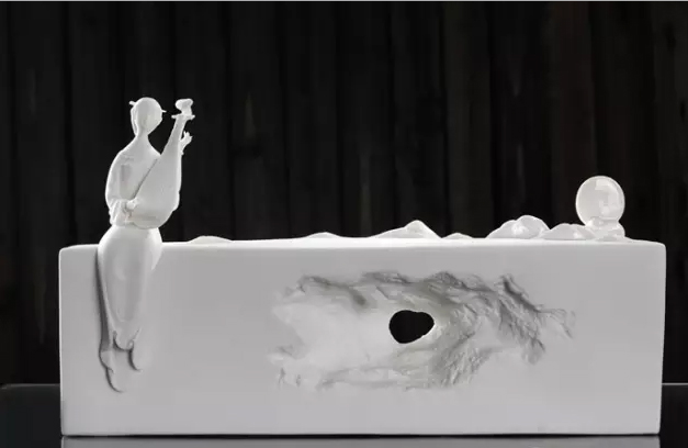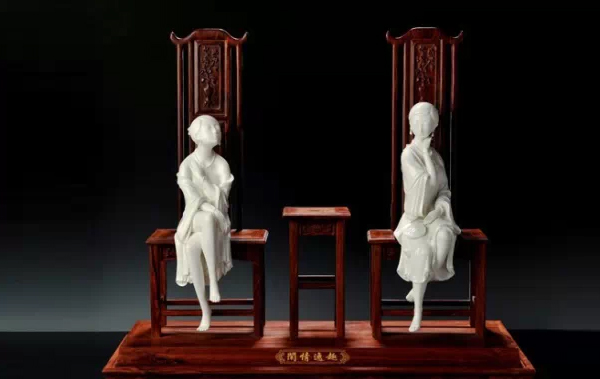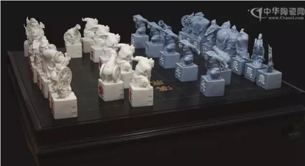本次展覽主要作品有德化傳統(tǒng)觀音、彌勒、歷史人物,更不乏有突破傳統(tǒng)及創(chuàng)新的作品,如張祥琦的代表作品之一,風(fēng)云棋局,通過德化陶瓷刻畫象棋的各種人物形象。