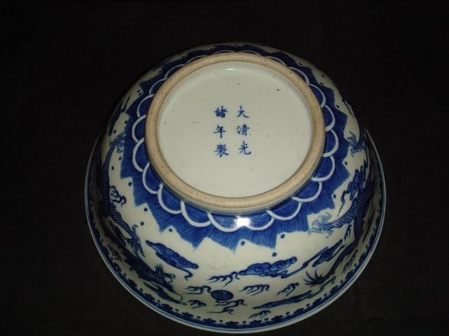 此器通體施黃釉,但黃釉薄,不似雞釉黃透潤(rùn),然用之于仿青銅器皿,則恰到好處,因其色澤沉穆含蓄,更顯古色古香之美,器底正中加施白釉,并用青花書“大清光緒年制”六字雙行楷書款。另?yè)?jù)介紹,黃釉瓷在古陶瓷藝術(shù)中占有很重要的位置,黃色一向是帝王專用色,黃釉瓷器更是明清宮廷用瓷,決不許民間使用。