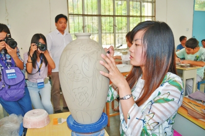 手拉坯、雕塑、刻花……當(dāng)天下午,設(shè)在汝州市高級(jí)技工學(xué)校的考場(chǎng),參賽者屏氣凝神,不敢有絲毫懈怠,他們將通過(guò)理論考試和現(xiàn)場(chǎng)制作,充分展示各自在陶瓷繪畫(huà)、陶瓷雕塑、手拉坯、刻剔花、陶瓷造型設(shè)計(jì)等分類項(xiàng)目方面的技藝。