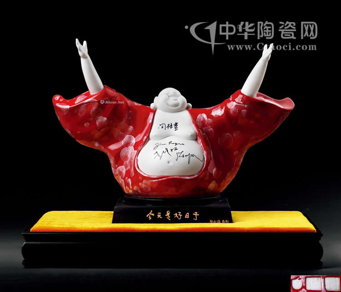拍賣首次引入的“德化名瓷中國白”,推出十件現(xiàn)代瓷雕作品,均為當(dāng)代工藝大師陳仁海先生的創(chuàng)作,他的“中國白”瓷雕作品,曾作為國禮贈送各國元首。拍賣現(xiàn)場,“德化名瓷中國白”專題,陳仁海制當(dāng)代白瓷作品“今天是個好日子”以747.5萬元成交,這件作品是唯一一件由世界投資大師羅杰斯、中國收藏家協(xié)會會長閻振堂、北京故宮專家李輝柄、中國白陳仁海大師四位鑒藏并親筆簽名的孤品,也是國家領(lǐng)導(dǎo)人贈送金正日的國禮同窯作品。同場,“中國白”瓷器“富貴臨門”以402.5萬元成交,這件瓷器也是國家領(lǐng)導(dǎo)人贈送外國首腦國禮的同窯作品。此外,“千手觀音”以103.5萬元成交,“人和壽長”以57.5萬元成交。