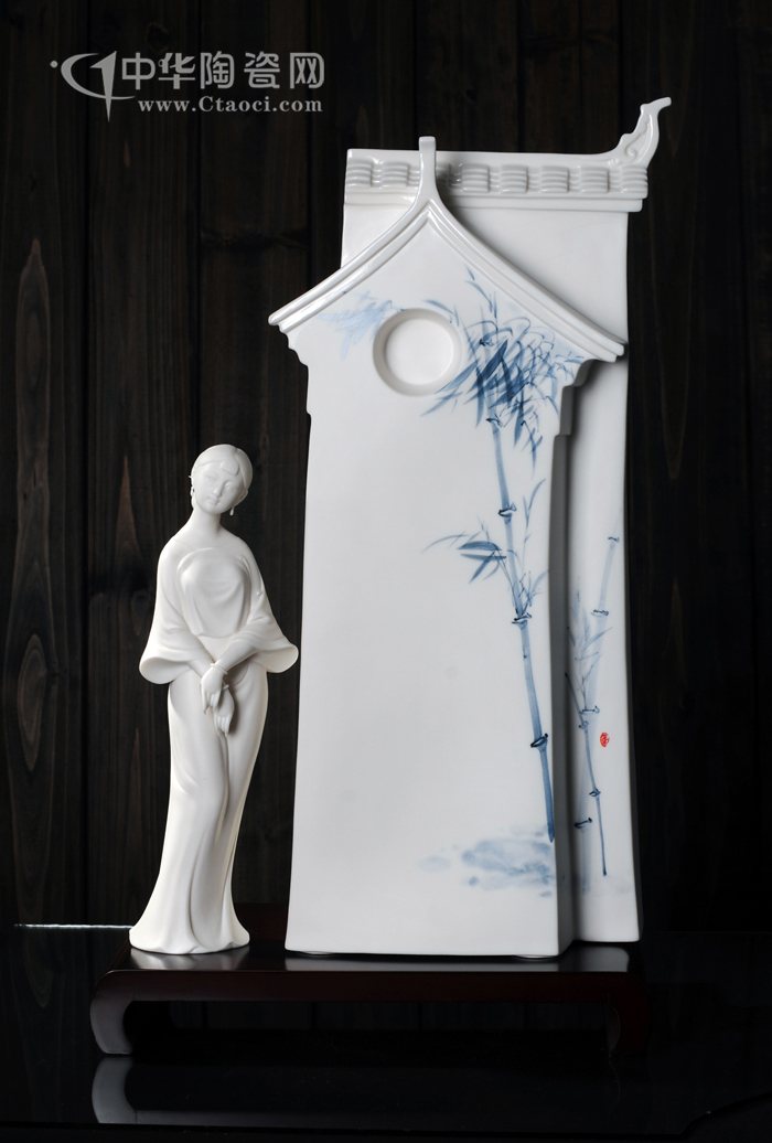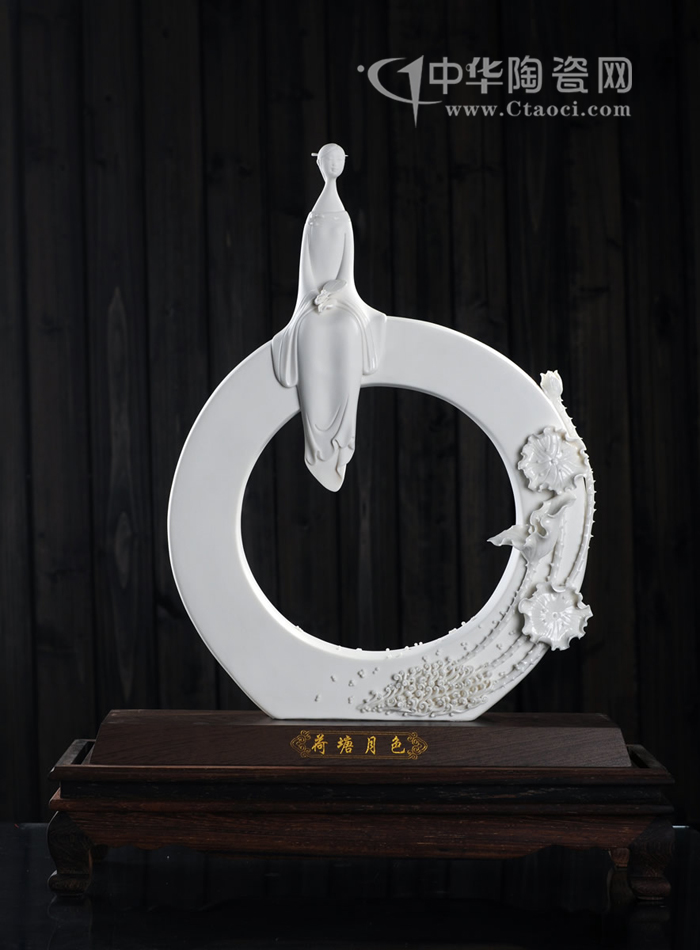 簡(jiǎn)介:首屆福建省陶瓷產(chǎn)品設(shè)計(jì)職業(yè)技能競(jìng)賽三等獎(jiǎng),林彬彬師承中國(guó)陶瓷藝術(shù)大師蘇獻(xiàn)忠,整件作品安寧?kù)o謐,以簡(jiǎn)潔卻很有視覺(jué)沖擊力的鏤空大月亮為主體,點(diǎn)綴上幾朵亭亭的清荷,美麗的姑娘恬靜淡然地端坐在月亮之上,靜靜地聆聽(tīng)萬(wàn)物生靈溫婉悠揚(yáng)的呢喃,又仿佛攜帶著一抔愁緒遙寄遠(yuǎn)方。
