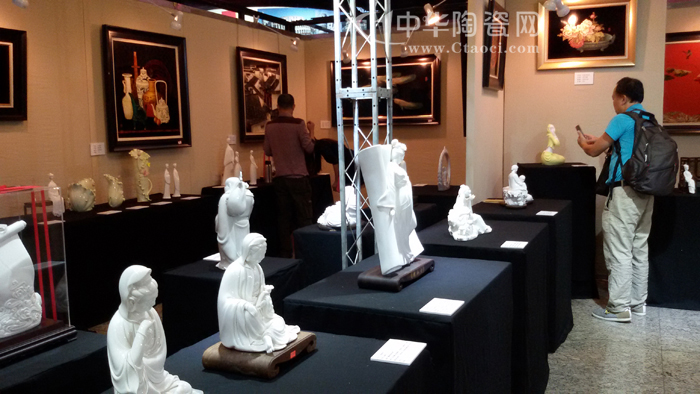10月15日至11月7日,由廣州盛滟藝術(shù)主辦,中華陶瓷網(wǎng)、博緣陶瓷協(xié)辦的“‘漆生活.瓷世界’—— 當代德化陶瓷名家作品展”在廣州白云機場金龍國際展覽廳展出,本次展覽薈萃了當代德化窯實力派名家及新銳青年瓷藝家近百件作品,其中有中國陶瓷藝術(shù)大師蘇獻忠,福建省工藝美術(shù)大師陳明華、陳麗玲、顏柳松、鄭志德,福建省陶瓷藝術(shù)大師蘇志強、張祥琦,新銳瓷藝家李錦峰、林建平、林彬彬、鄭清海等。展出的作品類別覆蓋了傳統(tǒng)佛像、歷史人物、仕女、現(xiàn)代居家擺件、藝術(shù)花瓶等,展覽吸引了眾多收藏愛好者及眾多媒體關(guān)注,并對德化陶瓷的精湛技藝贊嘆不已。