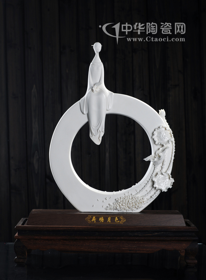 簡介:首屆福建省陶瓷產(chǎn)品設(shè)計職業(yè)技能競賽三等獎,林彬彬師承中國陶瓷藝術(shù)大師蘇獻忠,整件作品安寧靜謐,以簡潔卻很有視覺沖擊力的鏤空大月亮為主體,點綴上幾朵亭亭的清荷,美麗的姑娘恬靜淡然地端坐在月亮之上,靜靜地聆聽萬物生靈溫婉悠揚的呢喃,又仿佛攜帶著一抔愁緒遙寄遠方。