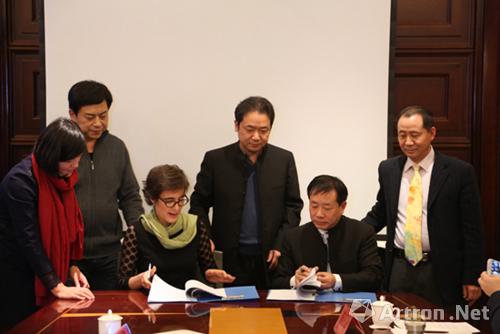 河南博物院院長田凱與溫蒂女士簽署“首屆中原陶瓷雙年展”策展協(xié)議。
