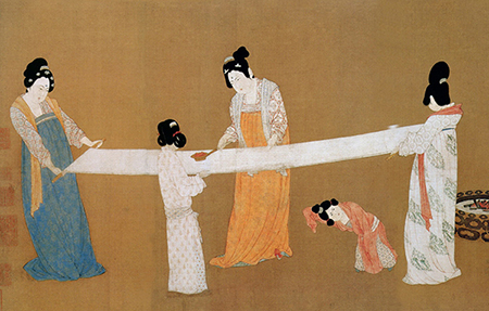 薩于鵬•卡宋素琬的創(chuàng)作就是如此,他所創(chuàng)作的陶瓷作品,其靈感來源,就是中國(guó)唐代的仕女造型。在唐代,中國(guó)文化迎來了發(fā)展的頂峰,在一定程度上,唐風(fēng)漢韻也成為了中國(guó)文化的代名詞。唐代婦女發(fā)式的時(shí)代特征鮮明而突出,大體分為上梳、平梳、下梳三種發(fā)型。上梳的發(fā)式,恰與唐代欣欣向榮、積極向上的時(shí)代特征相對(duì)應(yīng)。在唐代名畫《搗練圖》,為這種發(fā)式的存在提供了佐證。