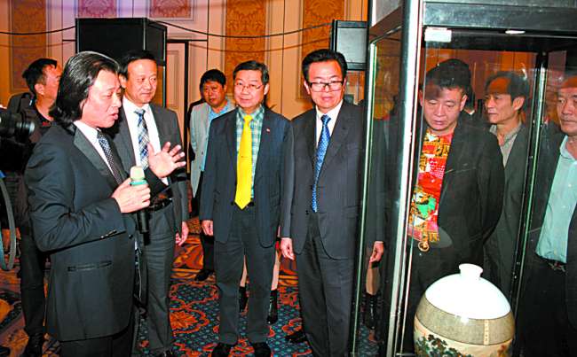 泰國(guó)立法院第一副議長(zhǎng)素拉猜·良汶洛猜、中國(guó)僑聯(lián)副主席李卓彬、陳有慶、澳門潮州同鄉(xiāng)會(huì)會(huì)長(zhǎng)劉藝良、澳門潮州同鄉(xiāng)會(huì)創(chuàng)會(huì)會(huì)長(zhǎng)許世元、唐志堅(jiān)、泰國(guó)華人青年商會(huì)會(huì)長(zhǎng)李桂雄等領(lǐng)導(dǎo)和僑領(lǐng)出席了《王芝文陶瓷微書作品展》開幕式并參觀了展覽。與會(huì)領(lǐng)導(dǎo)和嘉賓都被王芝文大師獨(dú)創(chuàng)的陶瓷微書技藝和堅(jiān)守傳統(tǒng)文化的精神所感動(dòng),贊嘆佩服。