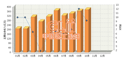 圖 2015年1~10月全國(guó)陶瓷行業(yè)月度主營(yíng)業(yè)務(wù)收入及同比