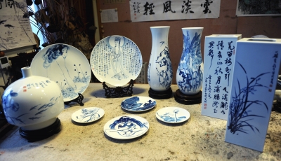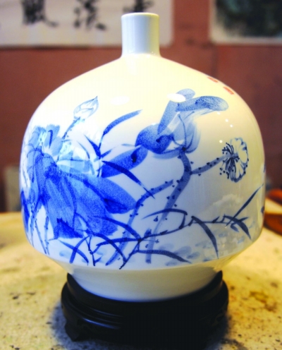 揚(yáng)州畫派聞名于世,中國畫造詣素來為人稱道。當(dāng)畫家開始跨界做起青花瓷,作品會是什么樣的呢?這樣的跨界是否會成功呢?昨天下午,記者在揚(yáng)州知名畫家劉南平的工作室內(nèi),看到了他近期剛在景德鎮(zhèn)燒制的10余件青花瓷,其中數(shù)件更是融入了西畫的元素,讓中國傳統(tǒng)的藝術(shù)品融入了西方元素。