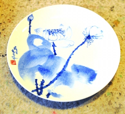 前段時間,劉南平終于如愿以償?shù)貋淼搅司暗骆?zhèn)。到景德鎮(zhèn)的第一天,劉南平站在青花釉里紅玉磬窯前,首先想到的是親自動手繪制一只魚盤,既討個吉利又了卻相思,更是體驗(yàn)一下青花瓷盤制作的機(jī)會。于是,在兩位青花瓷制作者的指導(dǎo)下,劉南平用兩天半的時間,繪就了11個盤子和8只花瓶。因?yàn)榱纤盟颇酀{,劉南平心中忐忑不安,不知最終燒出來的瓷器會是個什么樣子。不過好友與窯主在看完劉南平畫的料子后說沒問題,并讓他放心,燒出來的青花瓷一定好。于是他也不再多想,待盤子和花瓶進(jìn)窯后,即與友人驅(qū)車去皖贛交界處的瑤里、汪胡古村和原始森林采風(fēng)。繞皖古道、南山飛瀑、千年的紅豆杉及山村的野蔬風(fēng)味,令劉南平流連忘返。