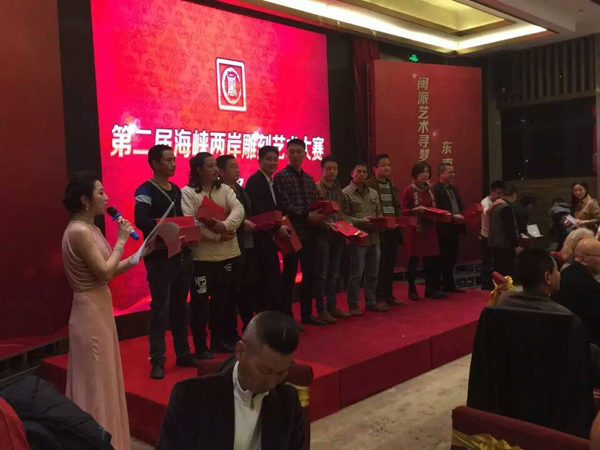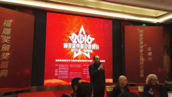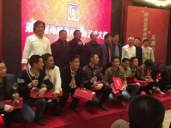 2016年1月3日舉行的頒獎(jiǎng)及公益拍賣(mài)晩會(huì),福建省文化廳副廳長(zhǎng)陳吉,民政廳民間組織管理局局長(zhǎng)郭奇,省文聯(lián)原黨組書(shū)記陳濟(jì)謀,省畫(huà)院執(zhí)行院長(zhǎng)郭東健,福建公安文聯(lián)副主席黃寶春,師大教授章雨等為參賽金獎(jiǎng)獲得者頒獎(jiǎng)。