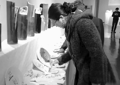 展覽的簽到處是一件由觀眾共同完成的作品——《生活的意義》,一堆生活中常用的杯盤的殘片,讓每個來客在上面簽名,寓意生活并沒有完美和固定的“形”。
