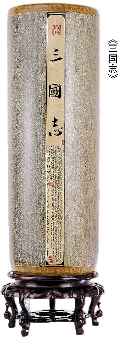 本次展出的《三國志》,更是王芝文花了七年功夫的殫精竭慮之作,是信心和意志力的一次巔峰考驗(yàn)。在這件高85厘米、直徑29厘米的陶瓷箭筒上,僅有的0.69562平方米書寫面積,洋洋灑灑地呈現(xiàn)了整部《三國志》,共352963個(gè)繁體字,相當(dāng)于平均每平方厘米50.7個(gè)字。通過高倍放大鏡,人們可以看到字字筆畫清晰,矯若驚龍。