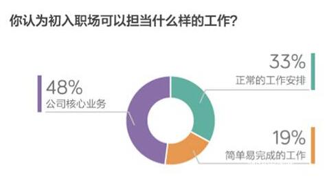 近一半大學(xué)生擁有極高的職業(yè)期待和野心,48%的受訪者認(rèn)為自己有能力承擔(dān)公司核心業(yè)務(wù)。同時(shí)也有更多的人懂得初入職場(chǎng)應(yīng)該放低姿態(tài),調(diào)查中有52%的人愿意接受上司安排的“打雜”“跑腿”指派。