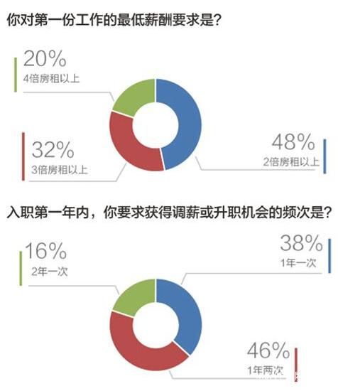 由于所在城市消費(fèi)水平不同,大學(xué)生對(duì)起薪的要求也各不相同,48%的人希望自己的收入是落腳城市房租的2倍。