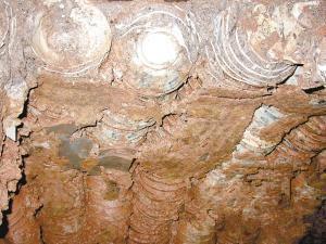 碗墓呈拱形,用黃泥、石灰、糯米漿混合成的三合土及碗相互交叉疊砌。砌墓的青花瓷碗,每個(gè)碗口徑在12厘米左右,相互碰撞時(shí)還能發(fā)出清脆的聲音。大部分瓷碗表面上釉,內(nèi)外均裝飾有紋飾。
