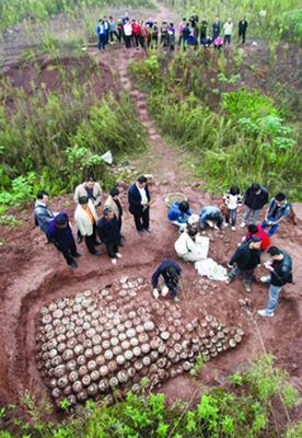 其實(shí),早在1986年第二次全國文物普查時(shí),達(dá)州就發(fā)現(xiàn)了碗墓。達(dá)州市文管所所長馬幸辛說,此次發(fā)現(xiàn)碗墓的鄰水縣,過去就屬于遠(yuǎn)達(dá)縣地區(qū)。碗墓是該地區(qū)從明代晚期至民國初期比較盛行的一種墓葬形式,清代最為流行,被當(dāng)?shù)乩习傩辗Q為“碗山”。
