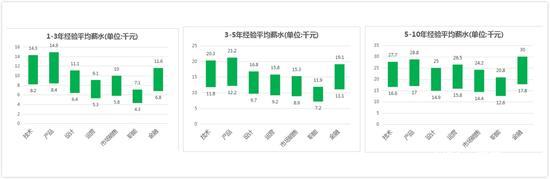 小編整理了一份數(shù)據(jù),從多個緯度整理了互聯(lián)網(wǎng)行業(yè)的薪資水平。依據(jù)不同的工作年限,在技術(shù)、設(shè)計、市場銷售、金融這四個領(lǐng)域,2015年這些職位平均的月薪分別為:
