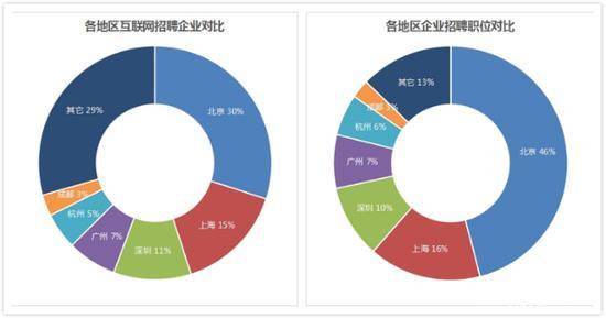 緊隨其后的則是上海、深圳、廣州。其中,上海地區(qū)招聘企業(yè)占總數(shù)的 15%,有 17.9 萬個職位需求,占總數(shù)的 16%;深圳地區(qū)招聘企業(yè)占總數(shù)的 11%,有 11.6 萬個崗位需求,占總數(shù)的 10%;廣州地區(qū)招聘企業(yè)占總數(shù)的 7%,有 8.5 萬個崗位需求,占總數(shù)的 7%。