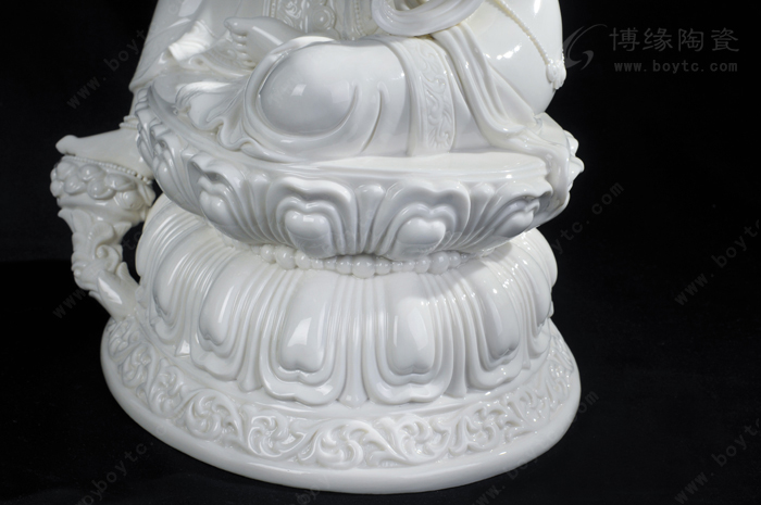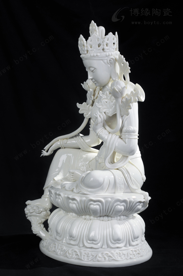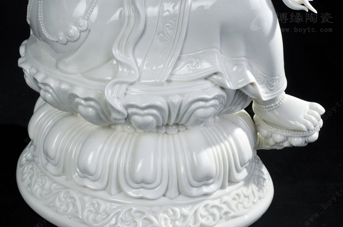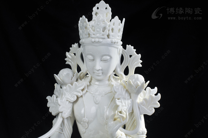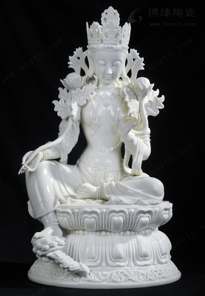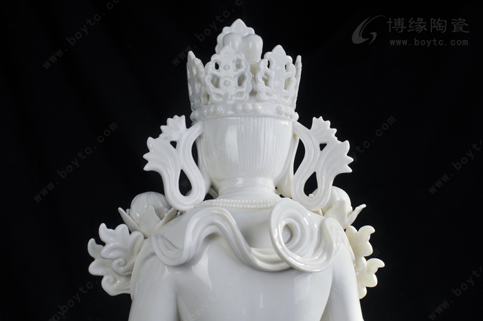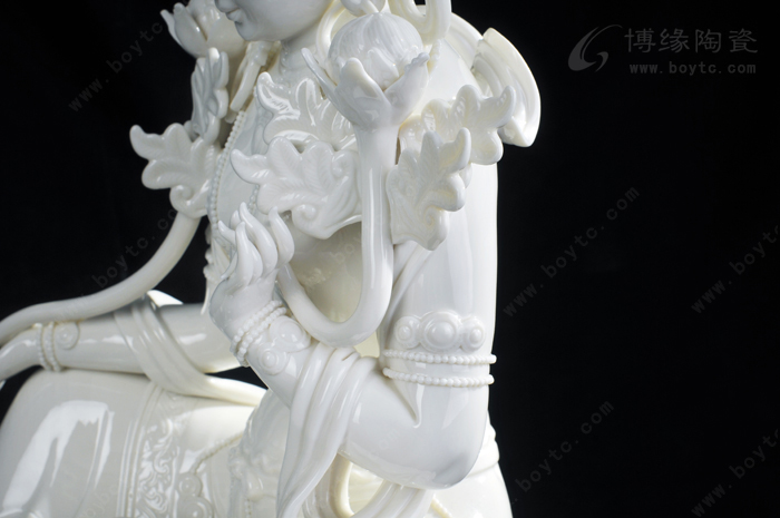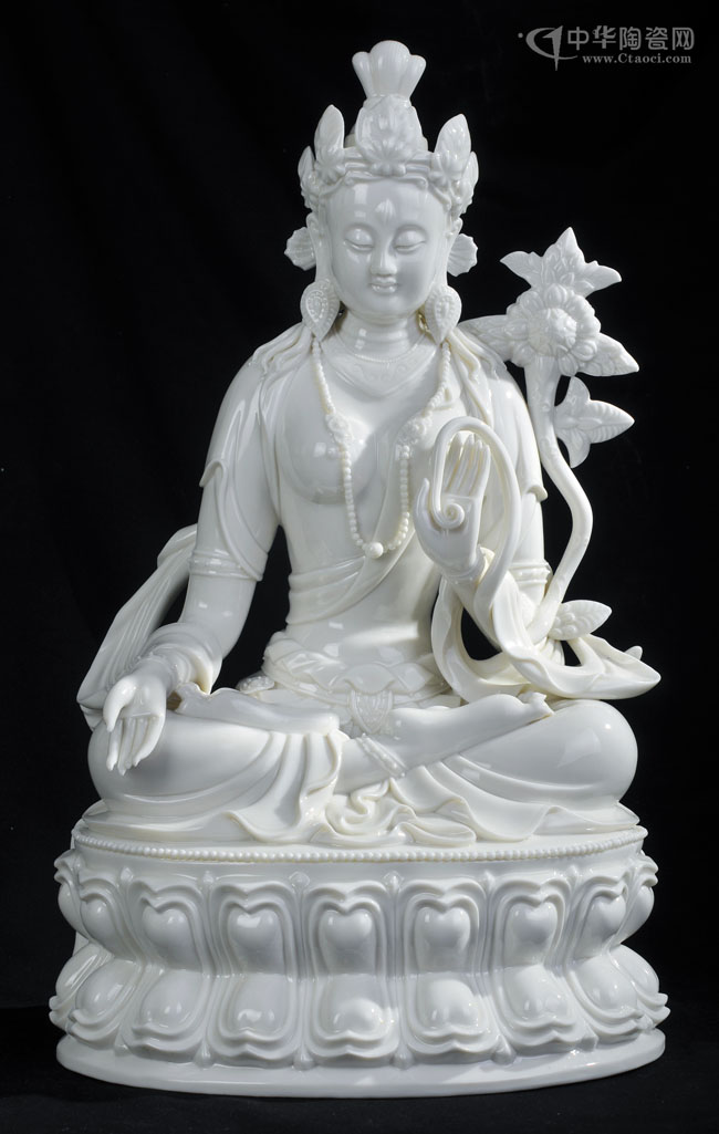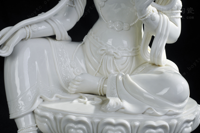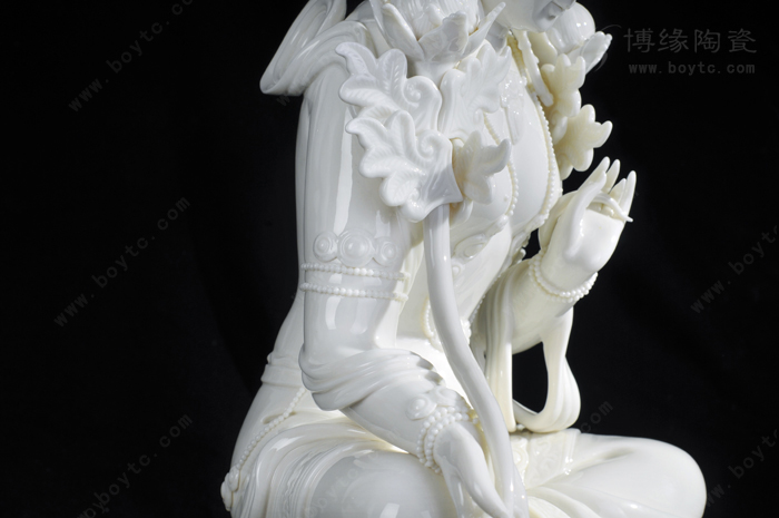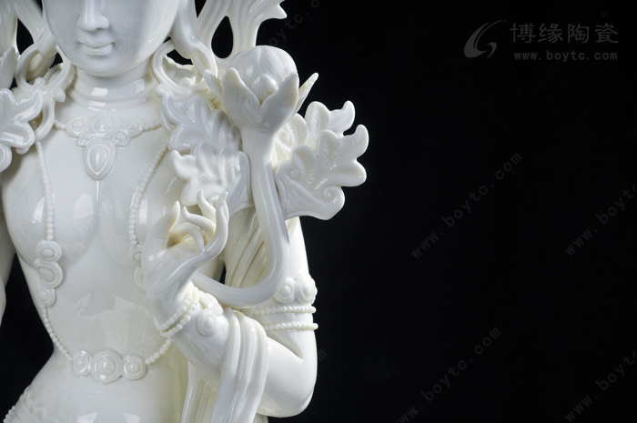 例二:“玉白釉瓷”:以前“德化白”、“中國(guó)白”完全靠瓷土好發(fā)色,最近新研發(fā)的“玉白釉”的發(fā)明,改變了長(zhǎng)期以來(lái)中國(guó)白的傳統(tǒng)概念,以創(chuàng)新方式來(lái)表達(dá)一樣中國(guó)白,和傳統(tǒng)的“中國(guó)白”相比,用“玉白釉”就可以不用很好的瓷土也能表達(dá)的非常溫潤(rùn)如玉、釉色肥厚、耐與琢磨的感覺(jué),有著典型的“豬油白“、“建白”、“象牙白”特征,跟高端的“中國(guó)白”很好的瓷土相比,不僅節(jié)省了很多成本,也創(chuàng)造了一種新的陶瓷藝術(shù)美。
