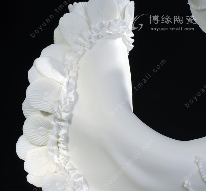 作品《聽濤》經(jīng)由工藝美術(shù)師蘇志強親手設(shè)計創(chuàng)作,以德化溫潤如玉的建白瓷為胎體,瓷質(zhì)潤如脂、晶瑩碧剔。作品中以一少女為主角,一手撫耳,作聽裝,一手持斗笠,表現(xiàn)少女的勤勞的品性,姿態(tài)婀娜,楚楚動人。作品精雕細刻,在璀璨瓷花的襯托下,更顯得作品人物形象栩栩如生,妙不可言。作品造型線條流暢、情境與人物表現(xiàn)得生動而活潑,是純手工制作的辦公擺件、居家、禮品收藏瓷。