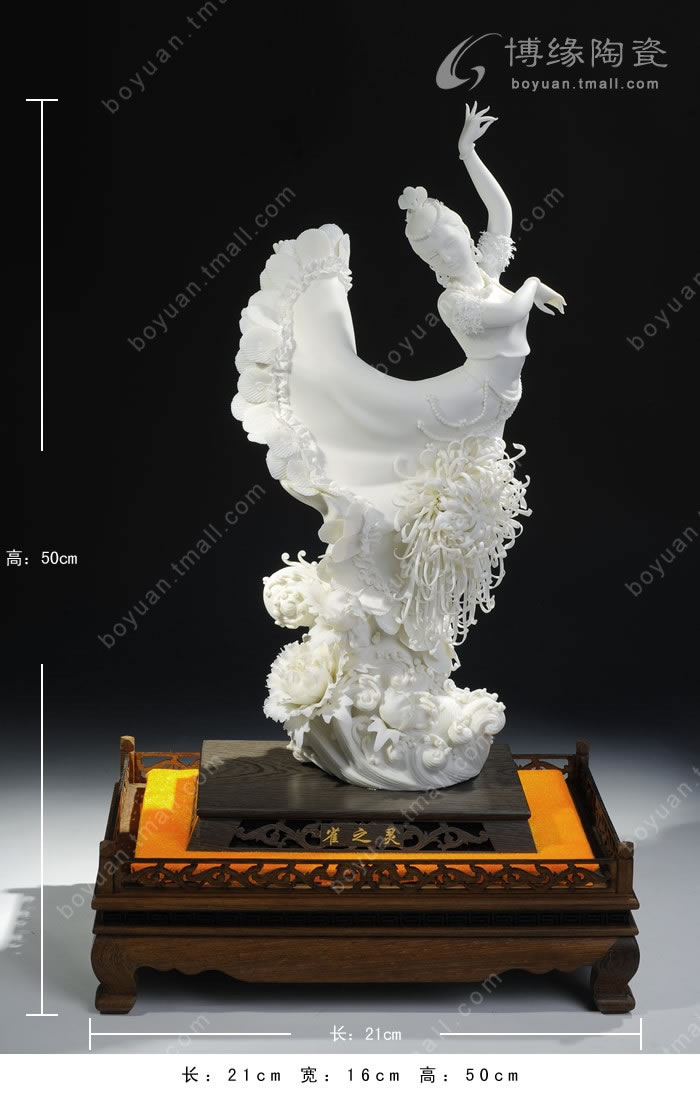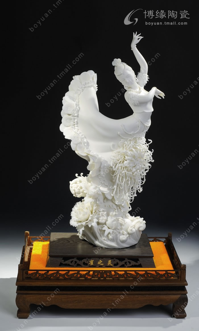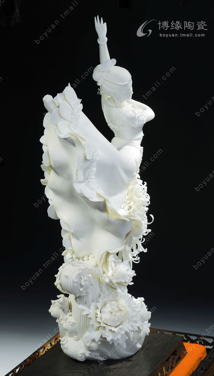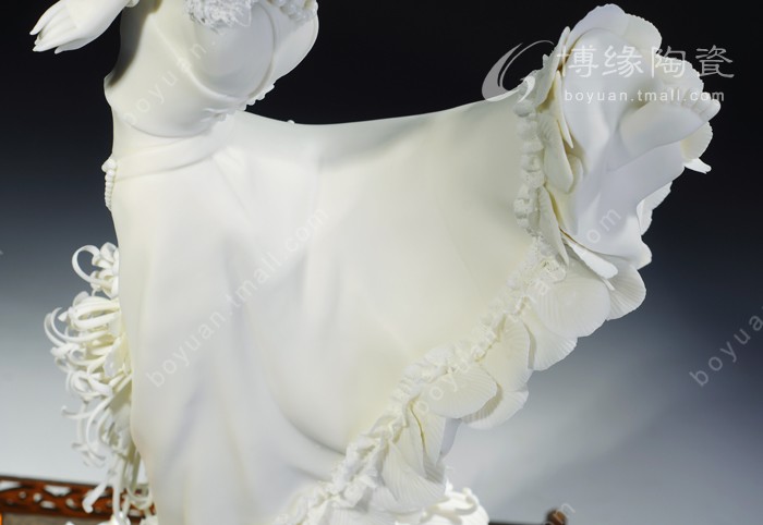 蘇志強所創(chuàng)作的作品,件件精美,靈活的雙眼、纖細的雙手、精致的菊花、牡丹等,不禁令人感嘆這精湛的工藝,鬼斧神工、妙趣橫生!風(fēng)華正茂的少女,在蘇志強的瓷刀下更是惟妙惟肖,或利用舞蹈展現(xiàn)女性的靈性;或透過勞動體現(xiàn)女性的賢德淑良;或通過吹拉彈唱來演繹女性的空靈……