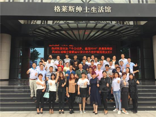 5月8日,格萊斯“全力以赴,贏戰(zhàn)2016”格萊斯陶瓷西南區(qū)域峰會暨新品訂貨會在格萊斯總部隆重舉行,幾十位來自江西、湖南的經(jīng)銷商出席會議。本次會議不僅給經(jīng)銷商分析了區(qū)域及市場的詳細情況,闡明了區(qū)域戰(zhàn)略部署,而且大大提升了經(jīng)銷商的士氣和斗志。同時,新產(chǎn)品獲得廣大經(jīng)銷商的一致好評,訂貨會上熱鬧非凡,搶訂新品的聲音持續(xù)不斷。