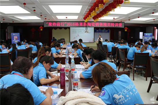 5月24-25日,“聚勢•前行”2016格萊斯陶瓷全國銷售精英特訓營(杭州站)圓滿舉行,來自安徽、浙江、江蘇、上海等省市的100多名銷售精英齊聚杭州中南海濱酒店開展為期兩天的特訓營學習。來自集團成功學院的劉麗萍、夏巧麗等多位講師以及外聘講師宋健老師為大家?guī)砹艘粓鲭y得的精神盛宴。