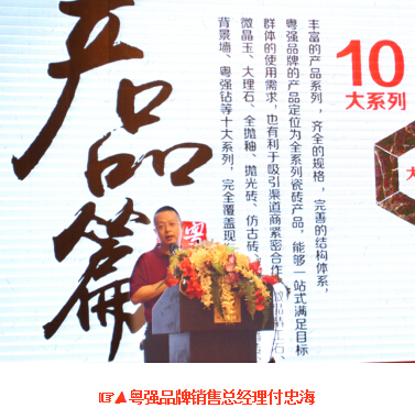 象征技術(shù)改革,具有開創(chuàng)瓷磚新時(shí)代意義的粵強(qiáng)鉆和極品大理石也閃亮登場于本屆財(cái)富峰會(huì)。結(jié)合粵強(qiáng)品牌產(chǎn)品硬、重的特色,極致還原天然石材紋理的新品吸引了在座每位經(jīng)銷商的眼球,引起經(jīng)銷商們的興趣,紛紛給予產(chǎn)品高度評(píng)價(jià)。